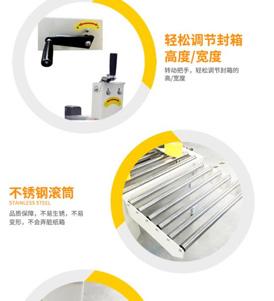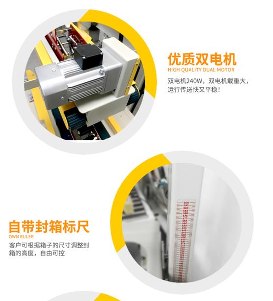 上下驅動一字型自動封箱機采用上下馬達驅動皮帶輸送封箱,上下皮帶驅動封箱穩定性高。而且這款封箱機具有廣泛的用途,適用于紡織、日用百貨、家用電器、藥品、食品、化工、輕工等各種行業。本款自動封箱機可單獨進行封箱作業,亦可與充填、捆包配套成流流水線使用。